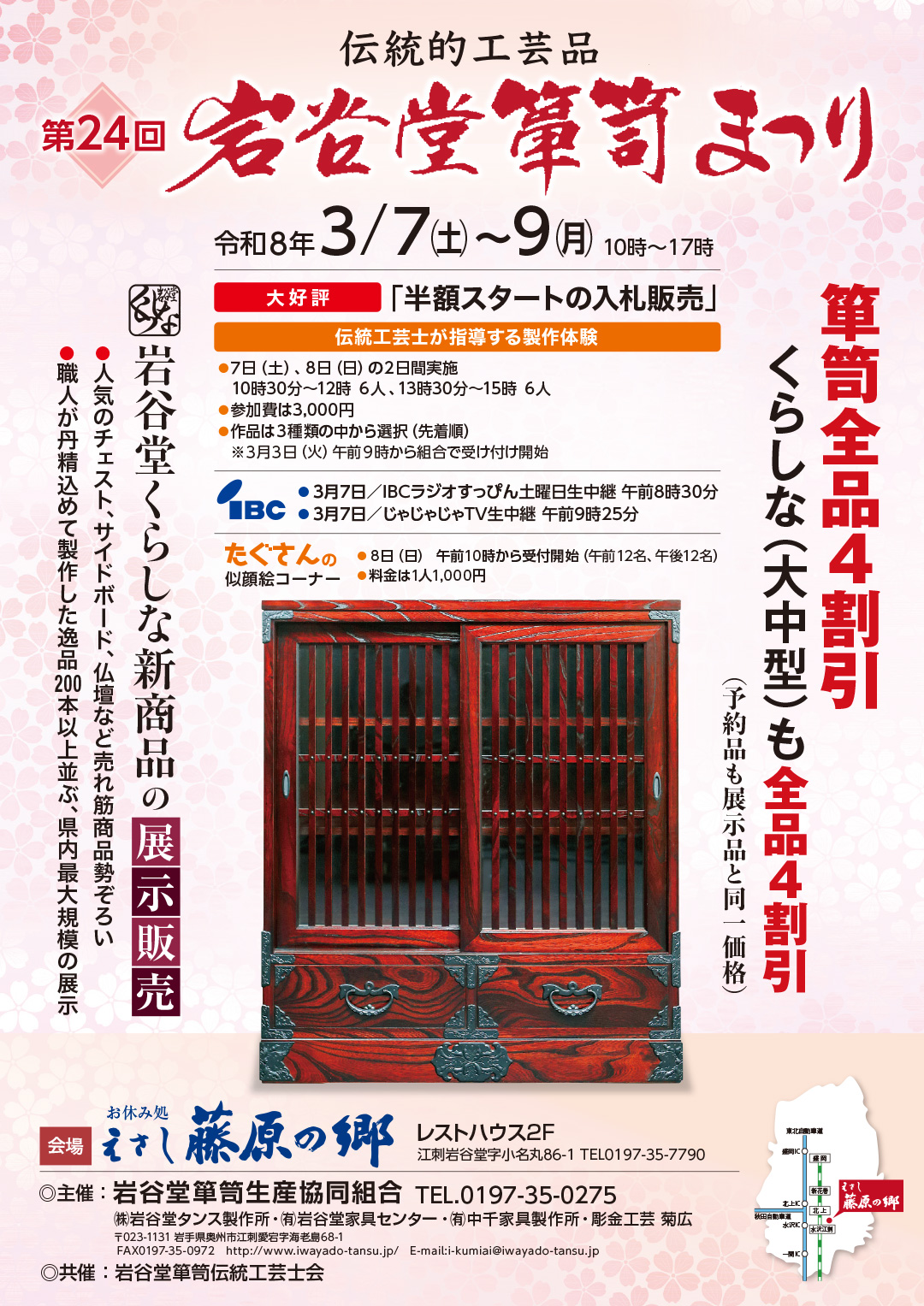 「第22回岩谷堂箪笥まつり」を、3月7日土曜日から3月9日月曜日までの3日間の日程で開催いたします。
